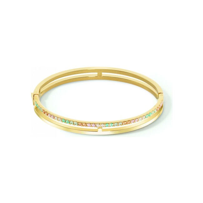 Joyful Colours Bracelet Coeur de Lion Joyful Colours en acier doré, cristaux Swarovski, oeil de tigre et verre