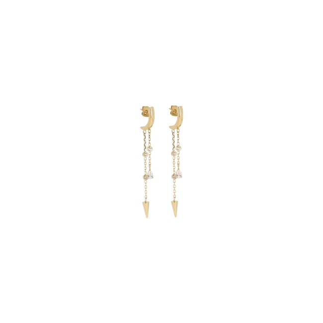 Boucles d'oreilles Zag en acier doré et oxyde de zirconium